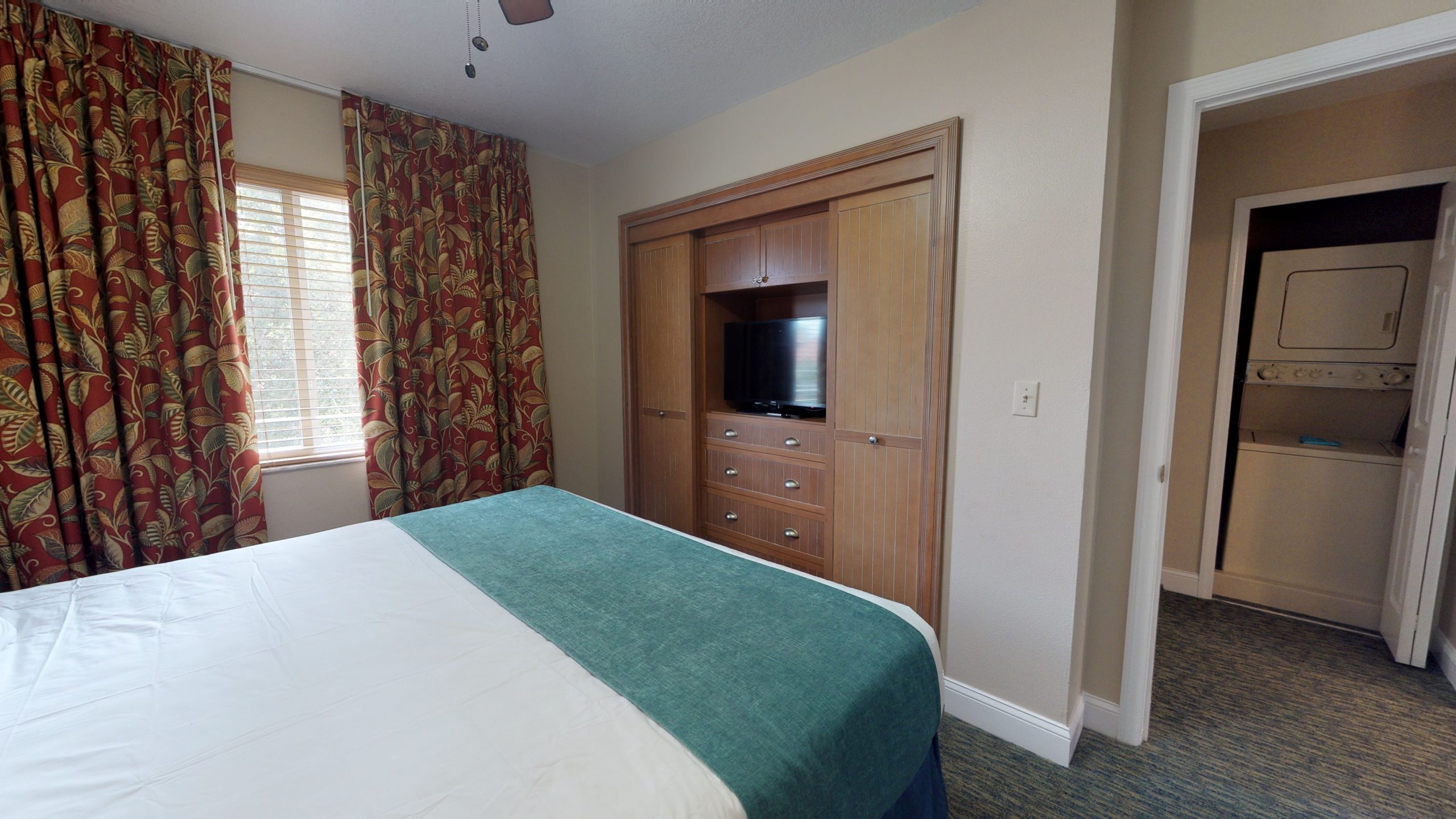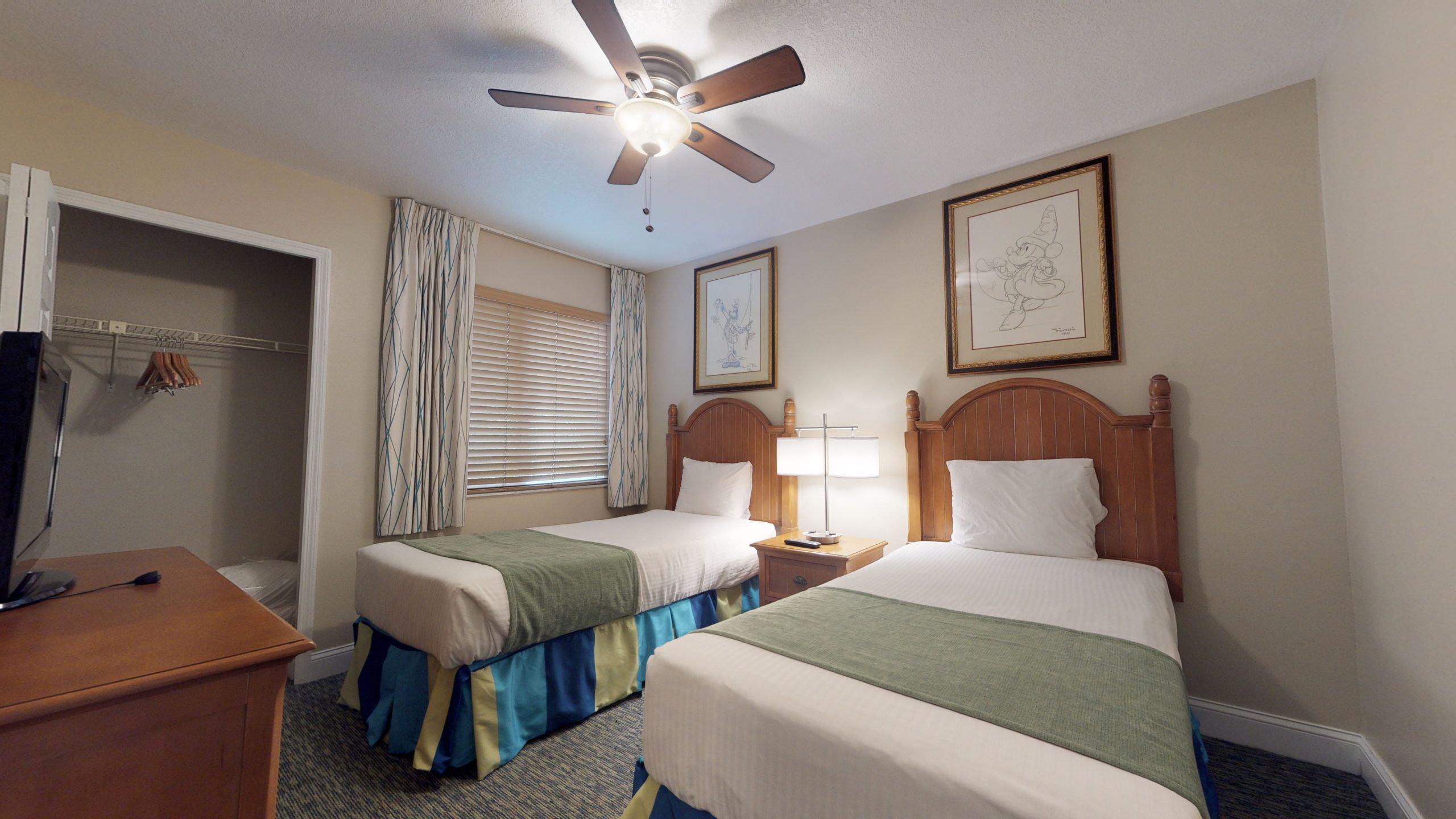 Second Bedroom with 2 Twin Beds, Ample Storage, and HDTV.